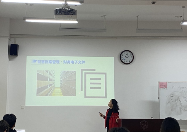 何老师首先对智能财务课程体系进行了简要介绍,是智能财务专业的一门专业基础课,主要讲授数智化时代财务变革实践与趋势方面的知识,传授企业经营决策的相关技能。何老师以区块链技术为切入点,详细介绍了新技术对财务管理的影响,并介绍了新技术在智慧档案管理、智慧融资等具体财务管理方面的现实应用。