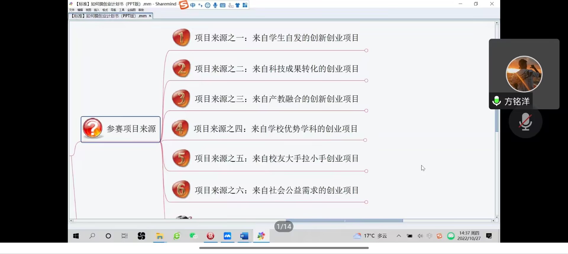 2022年10月27日下午,由威尼斯5139手机版主办的“中国国际‘互联网+’大学生创新创业大赛参赛辅导”会议召开,本次辅导会由教育部首批全国万名优秀创新创业导师、“互联网+”创新创业大赛专家委员会,“挑战杯”创新创业计划竞赛专家委员方铭洋主讲,广大师生以腾讯会议的形式参加此次会议。