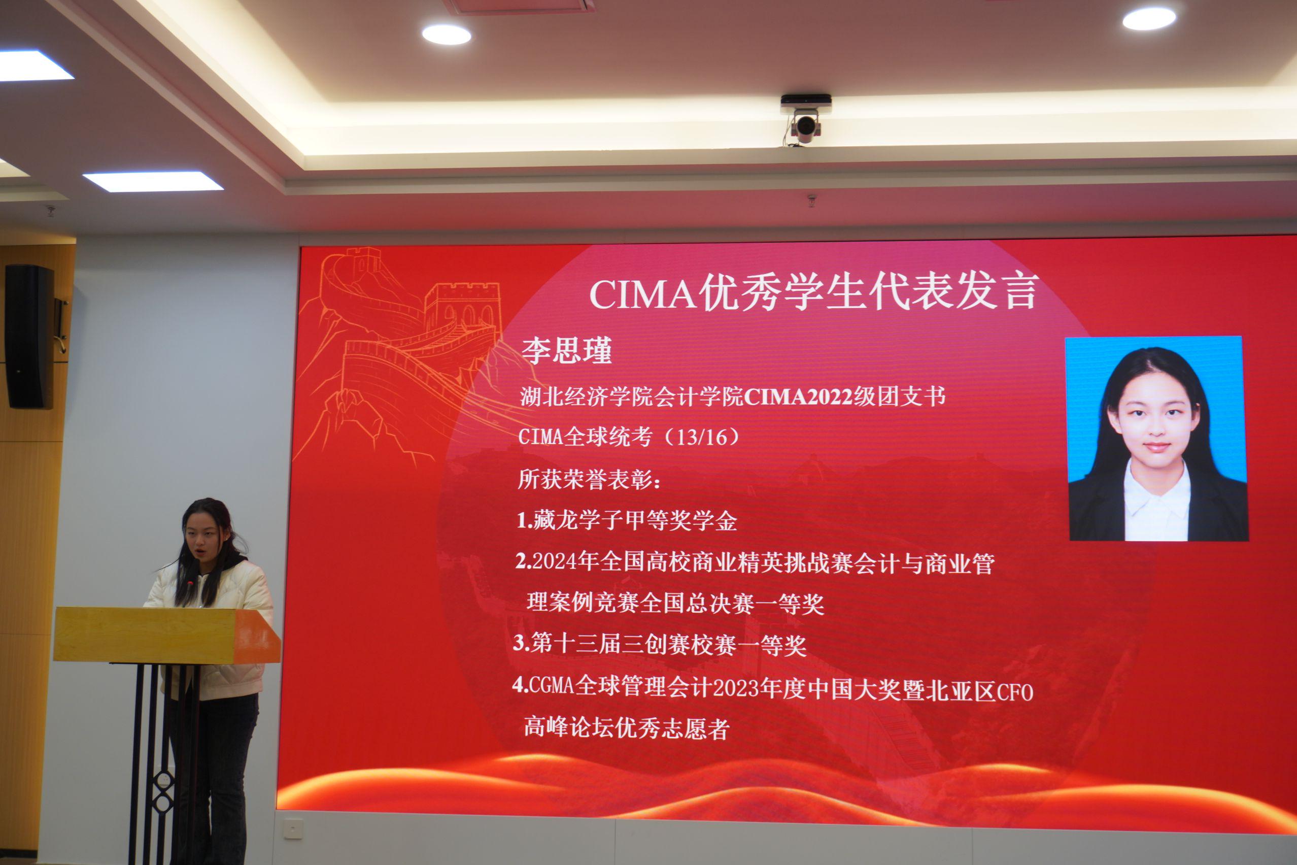首先,CIMA2241班李思瑾同学分享了她学习CIMA的感受,并阐述了她现已通过CIMA13门课程考试,荣获藏龙学子奖学金,备战学生赛事的学习方法及经验分享。