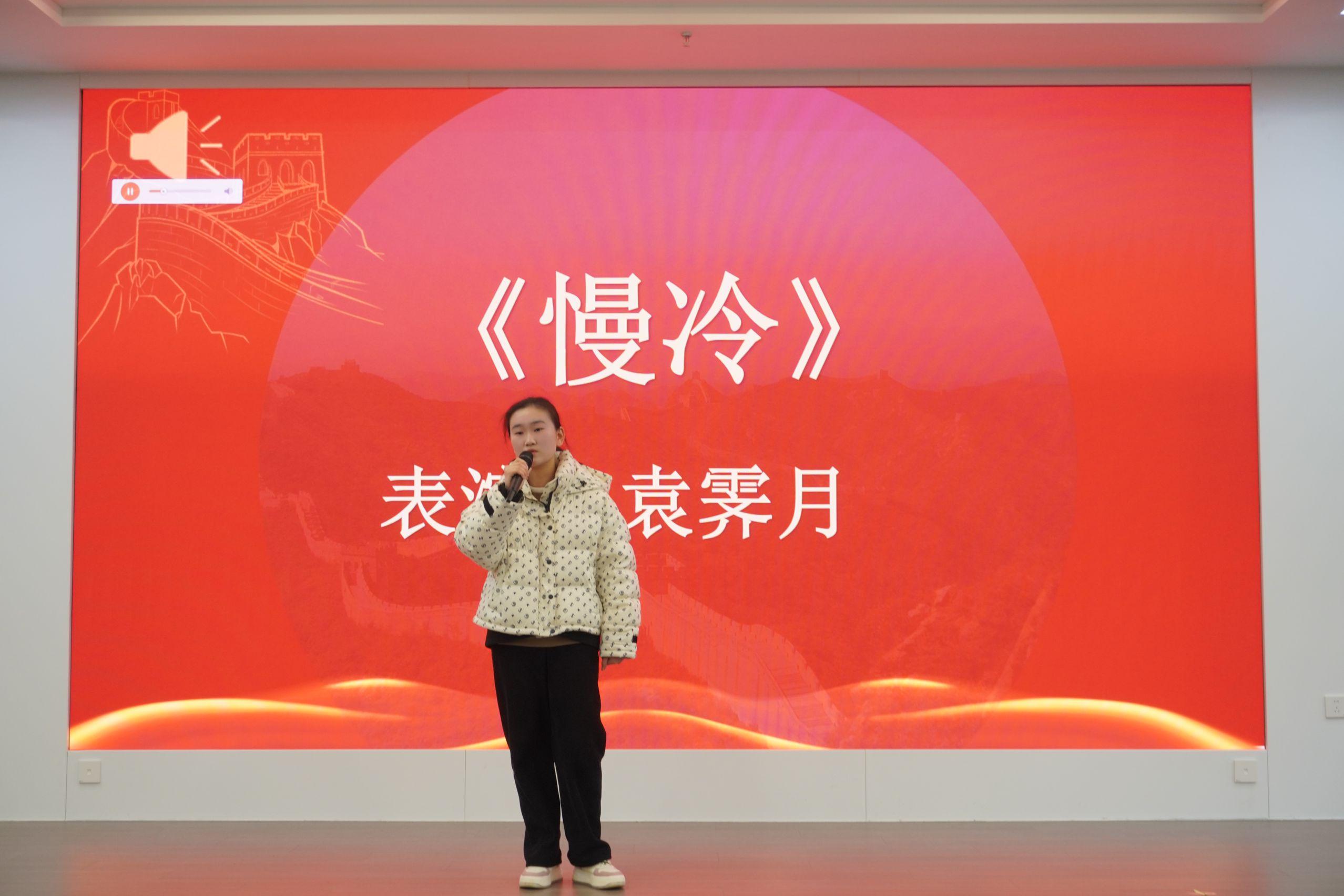 接着是袁霁月同学为我们带来歌曲《慢冷》,在我们茫茫人生漫长而丰富,会遇见无数人,让我们放慢脚步,感受冬天里的每时每刻,珍惜每次相遇!
