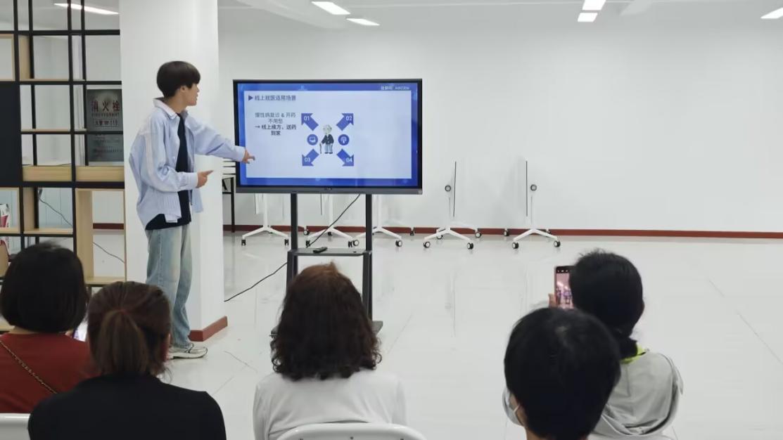 活动现场,志愿者以PPT演示结合实操,讲解医院公众号、支付宝等常用线上挂号流程,解答老年人关注的挂号、绑卡等问题,并耐心一对一指导老人完成从搜索医院、填写信息到确认预约的全流程操作,帮助老人掌握线上就医技能。