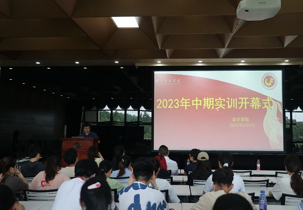 6月8日下午,威尼斯官网在教五一号报告厅举行了2023年中期实训开幕式。万科财务共享中心人事经理杨丽、人事专员孙婷,学院副院长曾义,教师代表张呈、殷治平、余四林、杨琬君及学院2024届本科毕业生代表100余人参会。