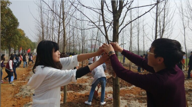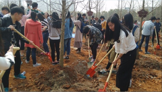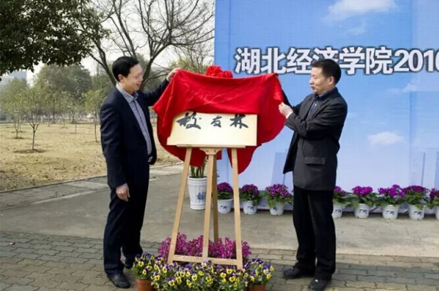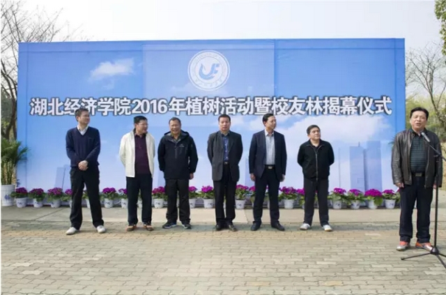 319日上午,2016年植树活动暨校友林揭幕仪式在东大门旁举行。校党委书记温兴生,校长、校友会会长漆腊应,副校长吴显富、何慧刚、招商银行武汉分行副行长谭继彬校友出席揭幕仪式。党委常委、校友会副会长张以林主持仪式。