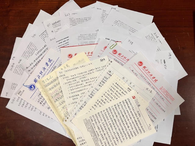 在集中研讨环节,学生党员分组围绕议题展开热烈讨论,并推选代表分享学习体会。朱宝林老师逐一进行点评,现场互动积极、交流深入。活动过程中,全体党员还现场提交了个人学习笔记,体现了严肃认真的学习态度。