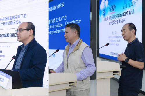 论坛主题报告环节由湖北会计发展研究中心主任许志勇和副主任张少勇主持。中国管理科学》主编李建平教授、《管理科学学报》主任熊熊教授、《中国科技论坛》主编张九庆研究员分别以《多源数据视角下的财务欺诈风险分析方法》《过犹不及:加班工作与员工生产力》《从拉斯克奖颁奖和ChatGPT被诉看科技治理新动向》为题作大会主题报告
