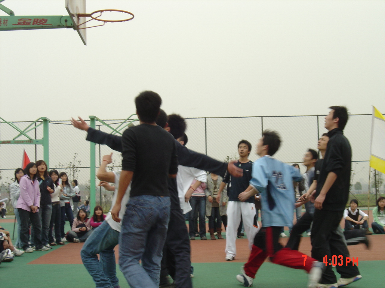 下午三点半,四大院系在湖边篮球场进行了篮球友谊赛,各院系所有的学生会成员全体出动,为场上的篮球健儿加油助威。威尼斯5139手机版在比赛期间为大家准备了饮料和水果,照顾周到。