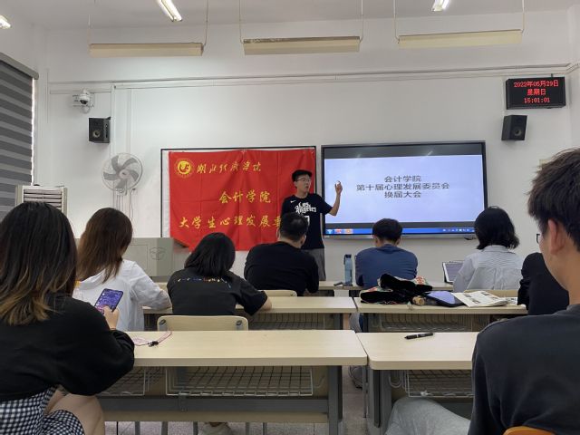 本网讯(通讯员朱姝瑞 许喆)2022年5月29日,第十届会计学院大学生心理发展委员会换届大会于教二213成功举行。换届领导小组由会长刘磊,两位副会长以及各部门部长组成,对十多位有留任意向的干事进行了面试考核,考核以“自我评价+答辩”的形式展开。