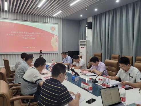 按照评审会议流程,首先由评审专家对中期审核材料按照省人大课题管理办法及学校规定进行审核;其次,课题组负责人余浪博士简要陈述选题的背景及研究意义,重点说明现阶段发现的主要问题、主要观点、对策建议、研究重点或难点、可能的创新点等。接着,答辩组专家分别发表意见,对提出的建议从创新性、科学性、针对性和可操作性四个方面进行评价,给出了相关指导性建议。专家们认为中期研究报告中提出的对策建议具有一定的创新性,但还需要进一步对可操作性进行论证。最后,经答辩组专家综合讨论,一致认为该团队按照研究计划完成了中期任务,项目通过了中期答辩。