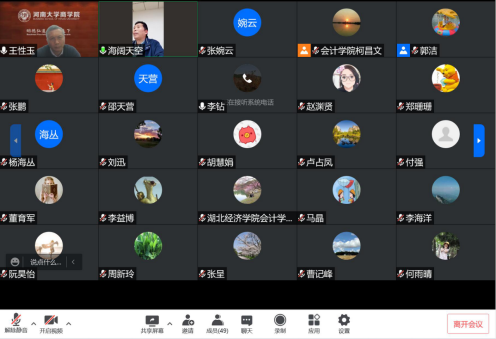 4月28日下午,中心邀请了教育部高等学校工商管理类教学指导委员会委员,河南大学商学院院长,二级教授,博士生导师王性玉在腾讯会议作了主题为“农村普惠金融发展的数字化逻辑---兼谈国家社科基金申报”的线上讲座,中心全体研究员与部分研究生参加了本次讲座,讲座由威尼斯5139手机版院长、中心新时代财务与会计理论学术团队负责人胡伟教授主持。