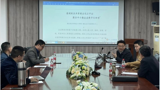 会上,团队成员刘国武教授介绍了他的最新研究成果“搭建财务共享商业化云平台,服务中小微企业数字化转型”。该成果首先从中小微企业数字化转型不足入手,接着详细分析了我省中小微企业数字化转型踯躅不前的主要原因,最后从“市场主导+政府引导”相结合的角度,提出了促进我省中小微企业数字化转型的政策建议。与会的研究员进行了热烈的讨论,并有针对性地提出了一些具有建设性的宝贵修改建议。