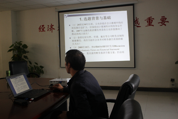 最后,邵天营研究员以他立项的2015年教育部规划基金项目《公允价值、财务呈报与会计信息质量》为例,从课题的选题背景与基础、研究视角与目标、研究内容与思路及研究的重点与难点等四个方面进行详细地讲解。