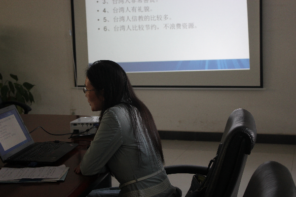 10月15日下午,我中心在学院大会议室举行暑期外出参会、境外学习及课题申报等学术交流活动。全中心所有研究员参加汇报交流会,会议中心副主任黄益雄主持。黄约研究员从台湾的总体情况、生活见闻谈起,简要地介绍了台湾高校的发展状况,并对自己访学的台湾政治大学和卢占凤研究员进修的台湾东吴大学从教师、教学和科研等方面进行了详细的介绍。