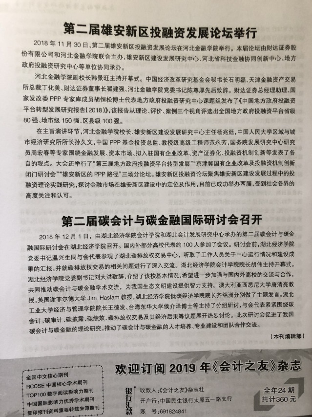 《会计之友》2019年第2期报道“第二届碳会计与碳金融国际研讨会”