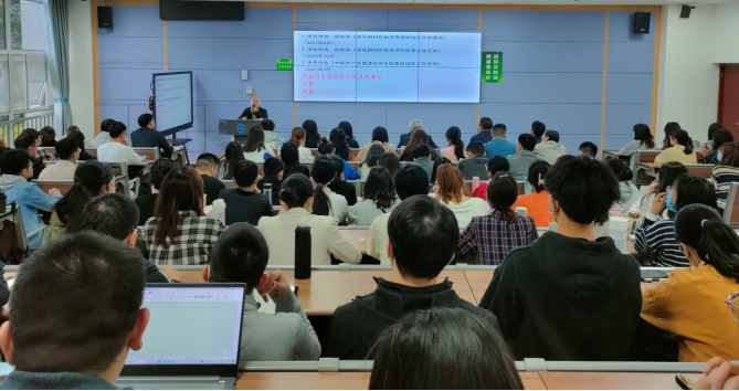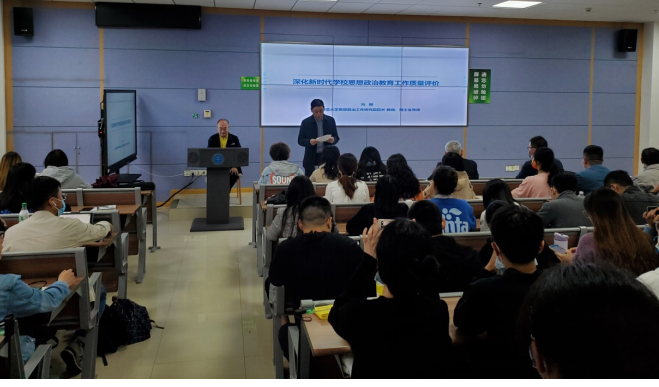 在本次报告中,冯刚教授从“习近平总书记关于教育的重要论述是根本遵循”、“《深化新时代教育评价改革总体方案》是重要引导”、“新时代学校思想政治教育工作质量评价的内容和特点”、“新时代学校思想政治教育工作质量评价的发展展望”这四个方面对新时代如何更好开展高校思想政治教育质量评价进行了深刻地讲述。在报告过程中,冯刚教授首先建议同学们在阅读文献时,应多关注中央政策性文件,同时要对真正代表中央精神的文件进行重视和区分;其次,对习近平总书记关于教育的重要论述中“立德树人”的重要性解读,冯刚教授从自己年少时在北京大学的求学经历切入,强调“立德树人”融入教育各环节、各领域、各方面是具有战略性考虑作用的;冯刚教授还提出思想政治教育具有缓释效应,应充分结合思想政治教育自身的特色来发挥评价体系的独特功能,强调要注重思想政治教育结果评价与过程评价的统一,并结合一些现实生活中高校学生思想教育案例,强调心理健康教育与思想政治教育有机结合的重要性。