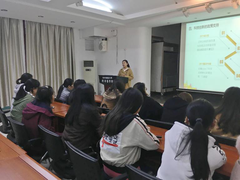 这是向日葵团队首次走出校门的宣讲,对团队意义重大。团队队长赵慧同学经过简单的自我介绍、向同学们解释了此次宣讲的主题及其背景后,宣讲正式开始。向日葵团队立足于十九大并且结合同学们的专业知识与日常生活实践,分层解剖,从五个方面对此主题进行了宣讲。首先韩梅同学通过介绍我国古代四大发明及播放一段段视频引出了我国的新四大发明,图文并茂,介绍了我国最新的科技创新成果,并为大家分析了这些成果对于我们当今社会的重大意义;其次赵慧同学从背景出发解读十九大报告中习近平总书记对科技创新的最新论述并对关键词进行分析,加深了同学们对重点理论的理解;中间宣讲团队穿插了一个有趣的游戏环节,在活跃气氛的同时,减轻同学们的疲惫,放松同学们的心情,加深两校之间的了解,使同学们对宣讲内容更加感兴趣,调动了听讲的积极性;接着赵雪渊同学上升到国家层面,从十八大以来国家政策支持方面展现科技创新的重要战略地位;最后唐家玉同学由例及理,语言诙谐幽默,指出并分析了我国科技创新的不足与提升途径,鼓励各位医学院同学们积极投身于医学创新的行列中,为我国医学事业的发展及建成世界科技创新强国贡献出自己的力量,升华宣讲主题,到达宣讲目的。