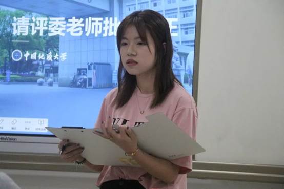 首先进行的是本科生团队的答辩。第一支展示团队为“千寻楚乡队”,他们的答辩主题是“湖北省《农村人居环境整治三年方案》实施情况调研——以十堰市六里坪村、黄石市柏林村、恩施市二官寨村为例”。答辩中,“千寻楚乡队”对其社会实践的开展流程进行了介绍,并在指出农村人居环境所存问题的基础上,对农村人居环境的整治提出了自己的看法。接着,“南望青年团队”以“新时代背景下红色基因的传承教育研究——以湖北省红安县为例”为主题进行答辩——既分析了新时代背景下红色基因传承的现状,又结合湖北省红安县的具体情况提出相应观点。随后,“爱国新青年队”、“下乡突击队”、“挚地有声团队”、“新时代青年团队”依次进行展示。