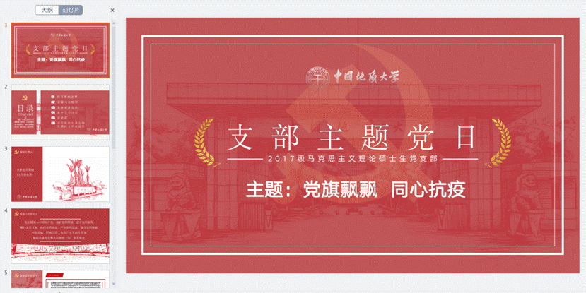 为深入学习习近平总书记关于疫情防控工作的讲话精神和重要指示,贯彻校党委针对抗击疫情的工作部署,发挥党支部战斗堡垒作用,凝聚党员先锋力量,让党旗在疫情防控中高高飘扬,坚决打赢疫情防控阻击战。2月23日晚7点,beat365英国官网网站2017级马克思主义理论硕士研究生生党支部召开了“党旗飘飘 同心抗疫”线上主题党日活动。本次党日活动由三部分组成:第一部分为支部书记解读重要讲话;第二部分为讲述抗疫英雄故事;第三部分为交流党员面对疫情的责任与担当。最后,预备党员积极提交思想汇报,全体党员为打赢这场战役手写祝福。