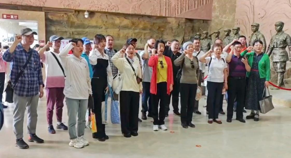5月14日上午,参加此次“结对领航”活动的师生汇同前往大悟县参观的离退休第六和十七支部部分党员,首先来到中原突围纪念馆。在展馆序厅,同志们重温入党誓词,告慰先烈、向党宣誓。