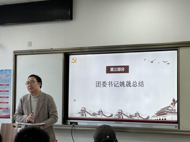 接下来,团委书记姚晟老师对本次培训会议进行了总结,肯定了此培训会议对各党支部做好同学们的入党推优工作能够提供许多帮助,并强调各党支部做好新一批团员推优工作,2024级新生要把握好各个时间点,及时地做好自己的发展推优工作。