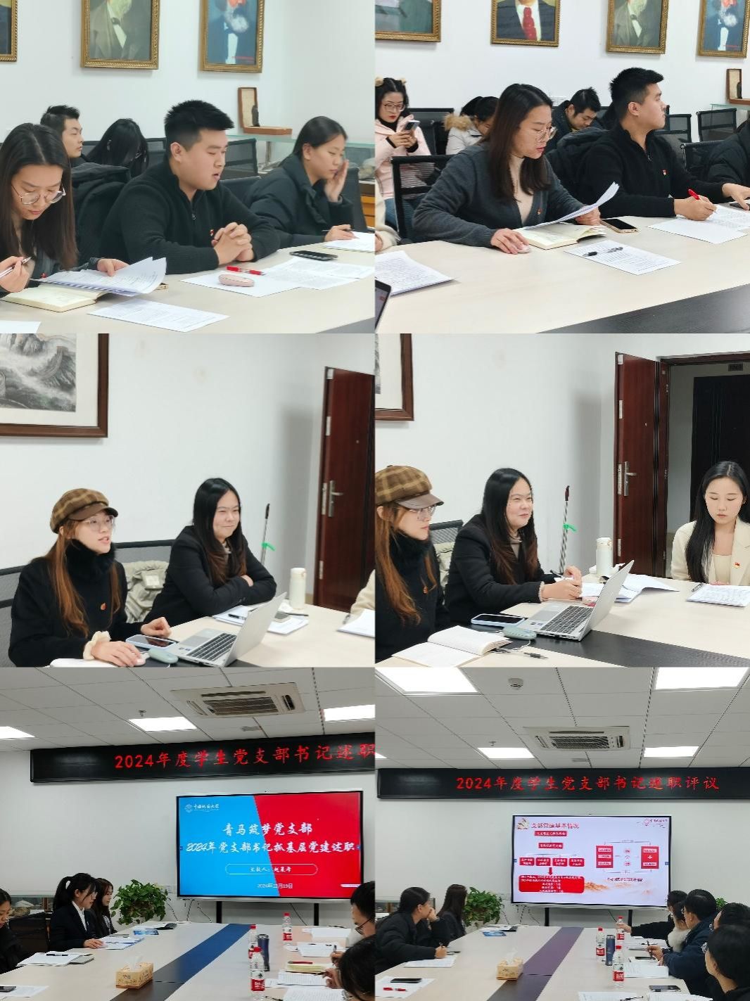 2024年beat365英国官网网站各学生党支部在学校党委的统一领导和学院党委直接指导下,深入学习贯彻习近平新时代中国特色社会主义思想,一体学习贯彻党的二十大和二十届三中全会精神、全国教育大会精神,落实学校第十三次党代会工作部署,扎实开展党纪学习教育。7位学生党支部书记分别就本年度党建工作基本情况、重点内容完成情况、党支部特色工作、存在的问题及整改措施进行了报告。