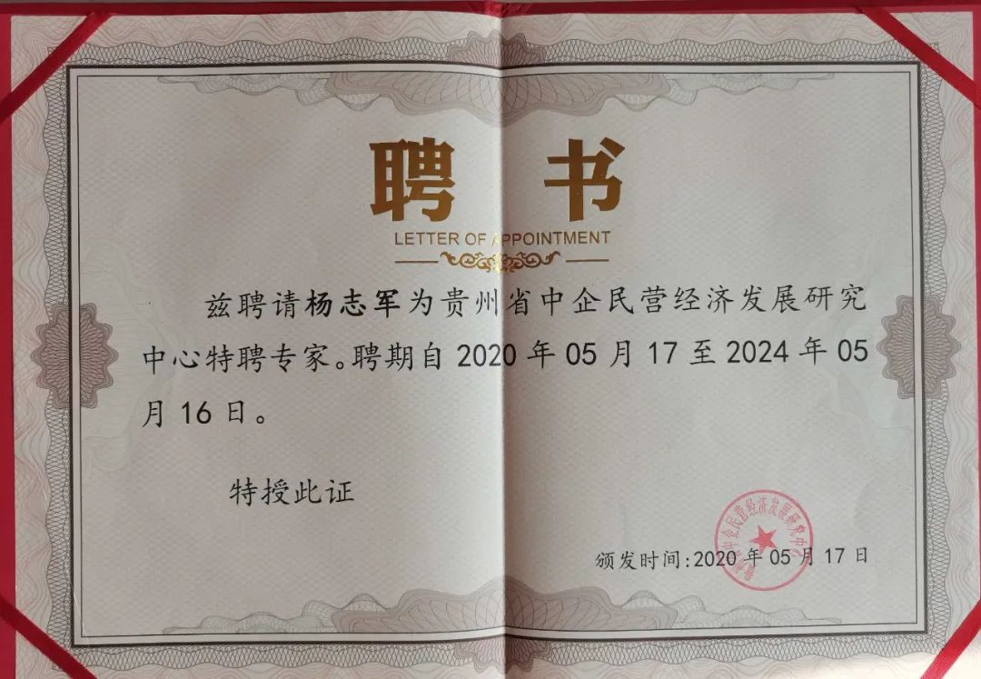 贵州省中企民营经济发展研究中心特聘专家