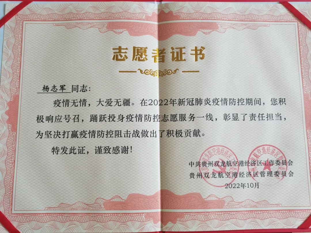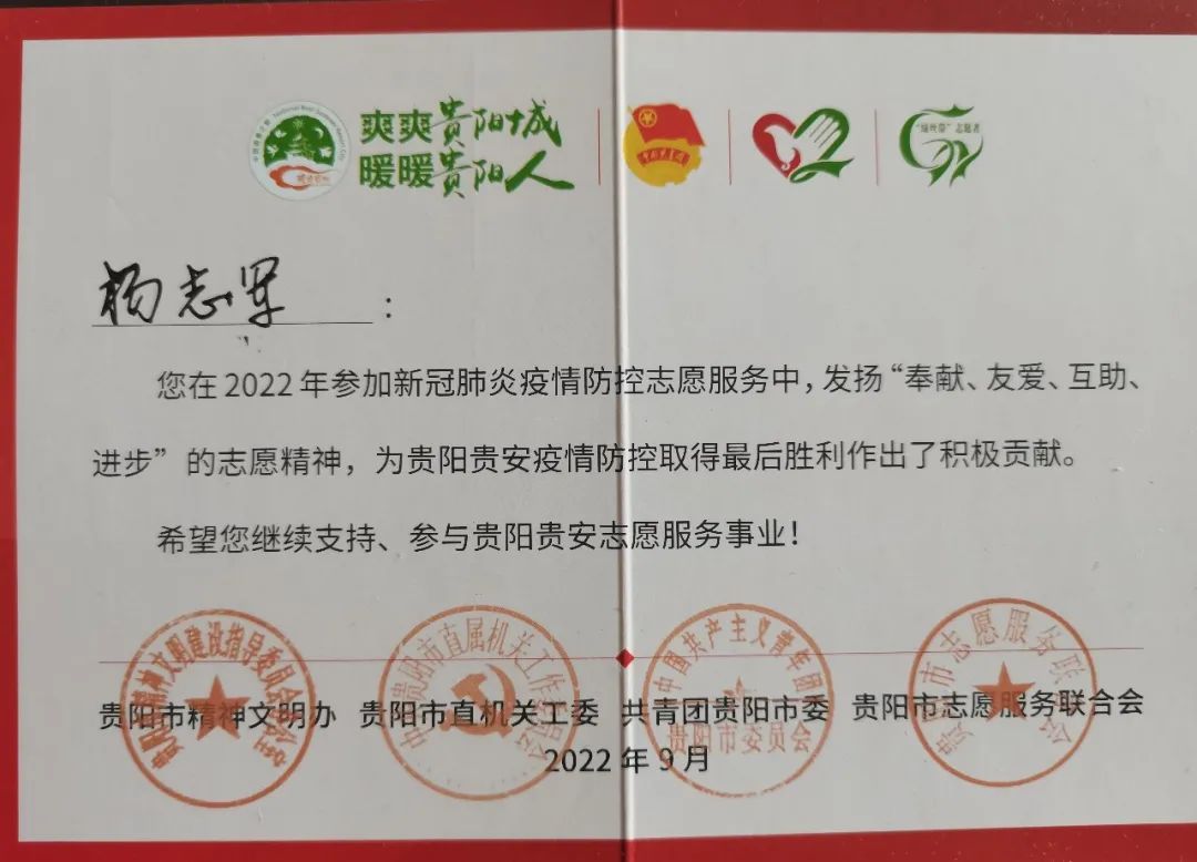 疫情期间,杨志军校友作为志愿者在贵阳学院家属区服务,积极为社区疫情防控做贡献,为人民生命财产安全保驾护航。
