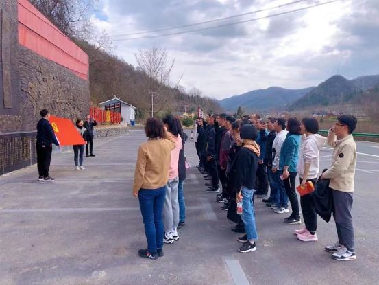 在豫鄂边区第一届人民代表大会会址前全体教师党员重温入党誓词,传承红色基因。罗家祠堂是1940年10月豫鄂边区党政军领导机关驻地。豫鄂边区党委在此召开边区第二次军政代表大会,成立豫鄂边区行政公署,许子威当选为行政公署主席。1942年3月,豫鄂边区第一届抗日人民代表大会也在此召开,会议历时23天,通过了《豫鄂边区施政纲领》,体现了边区人民对于早期政府组织的探索。