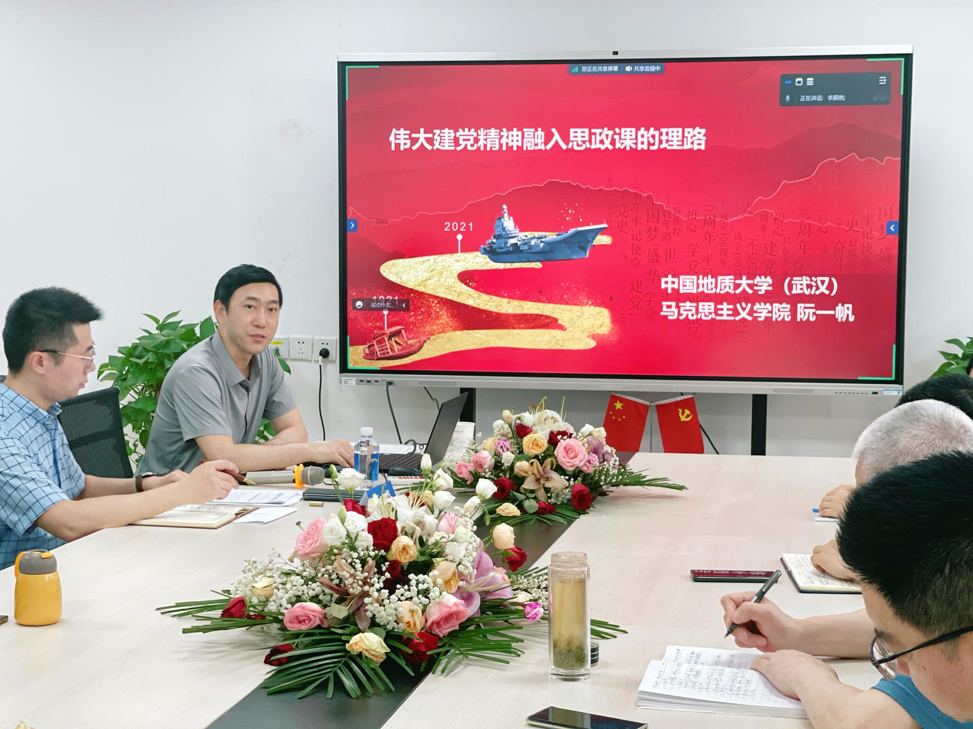 6月29日下午,beat365英国官网网站“红绿蓝”大中小学思政课一体化共同体“伟大建党精神模块”集体备课会在南望山校区东区教学综合楼B1013会议室举行。学院党委书记汪再奇、院长阮一帆、共同体成员单位领导及全体思政课教师与会。武汉工商学院等成员单位设置了分会场。学院副院长孙文沛主持会议。