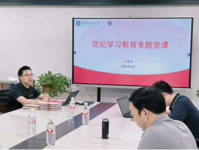 第一项为“学党纪”专题党课学习。学纪是知纪、明纪、守纪的基本前提,beat365英国官网网站党委书记汪再奇同志为师生党员讲授党纪学习教育专题党课。汪再奇书记表示,习近平总书记关于全面加强党的纪律建设的重要论述为加强新时代党的建设、推进党的自我革命指明了前进方向,为党纪学习教育提供了根本遵循,在全党开展党纪学习教育既是推动全面从严治党的重要举措,也为推进清廉地大建设,实现中华民族伟大复兴提供了坚强的纪律保障。他从为什么学党纪、学什么内容、怎么开展学习三个问题入手,对《中国共产党纪律处分条例》部分重点章节进行了详细解读。