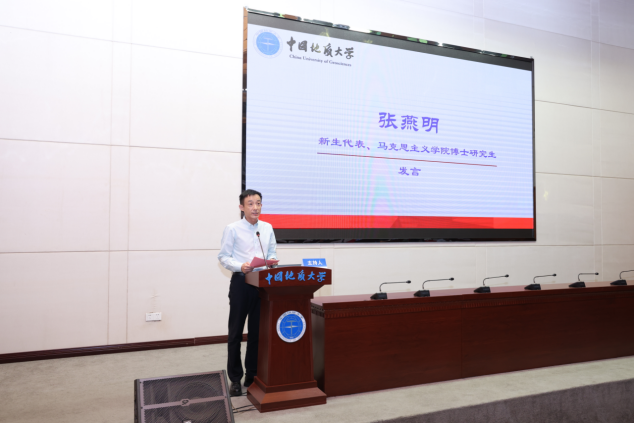 新生代表、beat365英国官网网站2024级博士研究生张燕明发言。他表示,希望全体新生在今后的学习中互相帮助、碰撞思想火花,收获同窗情谊,踔厉奋发、勇毅前行、严谨治学,让艰苦朴素、求真务实的校成为人生精神追求。