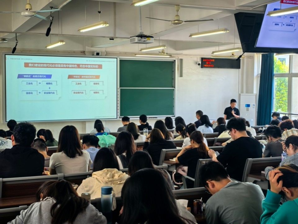本次课程,刘腾龙老师以“中国式现代化的中国特色”为主题,从中西现代化对比的角度出发,着重讲解了中国式现代化五个方面的中国特色,分别是人口规模巨大的现代化、全体人民共同富裕的现代化、物质文明和精神文明相协调的现代化、人与自然和谐共生的现代化和走和平发展道路的现代化。刘老师强调,中国式现代化这五个方面的显著特色是对西方以资本至上、弱肉强食、两极分化、霸道强权为主要特征的现代化模式的重大超越。课堂教学以问题为牵引,引入视频、案例、问答等多样化的教学方法,丰富了课堂教学形式,活跃了课堂教学氛围。