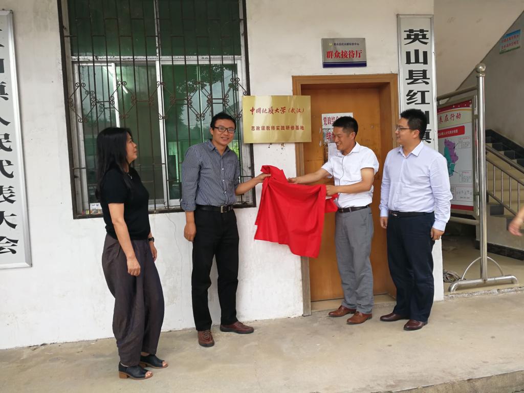 为进一步加强示范点和beat365官网师生之间的学术科研合作,拓展理论与实践相结合的人才培养模式,宣讲会结束后,beat365官网在红山镇举行了“beat365英国官网网站(武汉)思政课教师实践研修基地”揭牌仪式。英山县教育局党组书记、局长冯廷权,英山县委宣传部常务副部长冯雪梅、英山县红山镇党委书记陈琼、beat365英国官网网站党委书记侯志军、副院长陈军等参加了揭牌仪式。