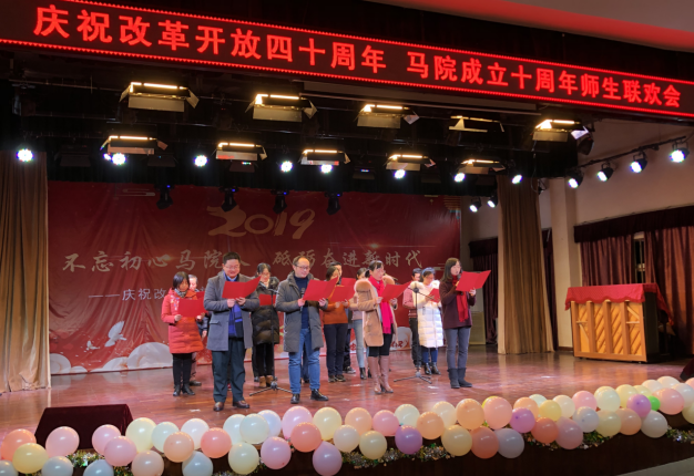 (通讯员:王艳波 罗悦)2018年12月28日晚,beat365英国官网网站“不忘初心马院人 砥砺奋进新时代”师生联欢会在东区老年人活动中心举行。2018年,是改革开放的40年,是神州大地铸就辉煌的40年。2018年,是beat365英国官网网站成立10周年,是经历风雨硕果累累的10年。在这特殊的日子,全院师生共聚一堂,隆重庆祝改革开放40周年暨学院成立10周年,为祖国、为学院带来了最诚挚的祝福。