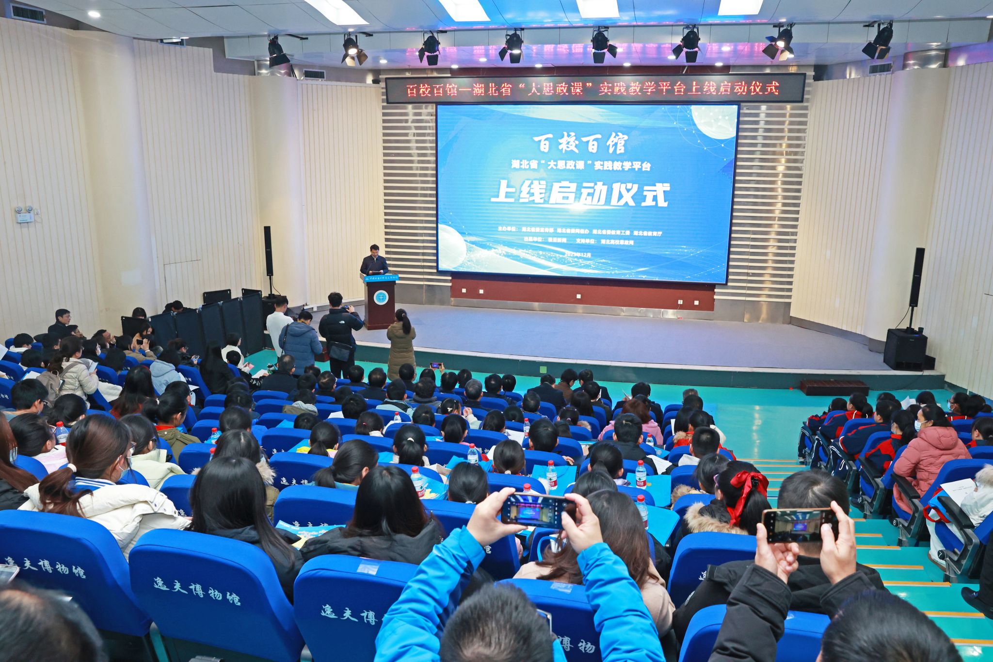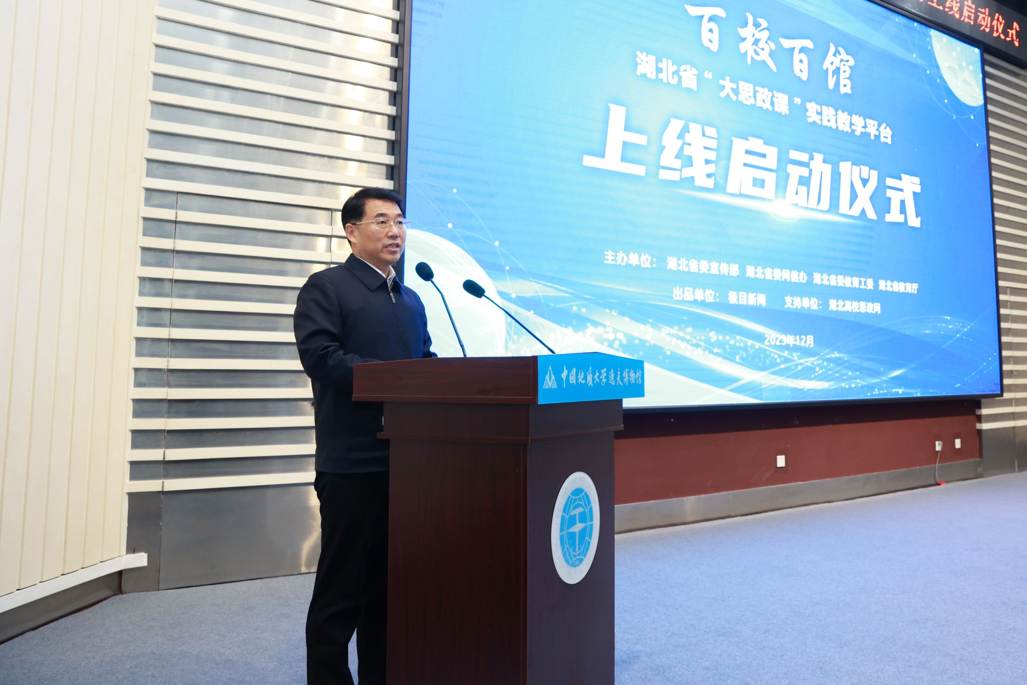 地大新闻网讯 (记者 孙彦钦)12月20日,“百校百馆”——湖北省“大思政课”实践教学平台上线启动仪式在我校逸夫博物馆举行。仪式现场发布了“百校百馆”平台首批上线展馆名单,即日起,湖北大中小学师生及学生家长,可通过线上平台一键预约,实地打卡首批已入驻平台的科技馆、博物馆、艺术馆等场馆。