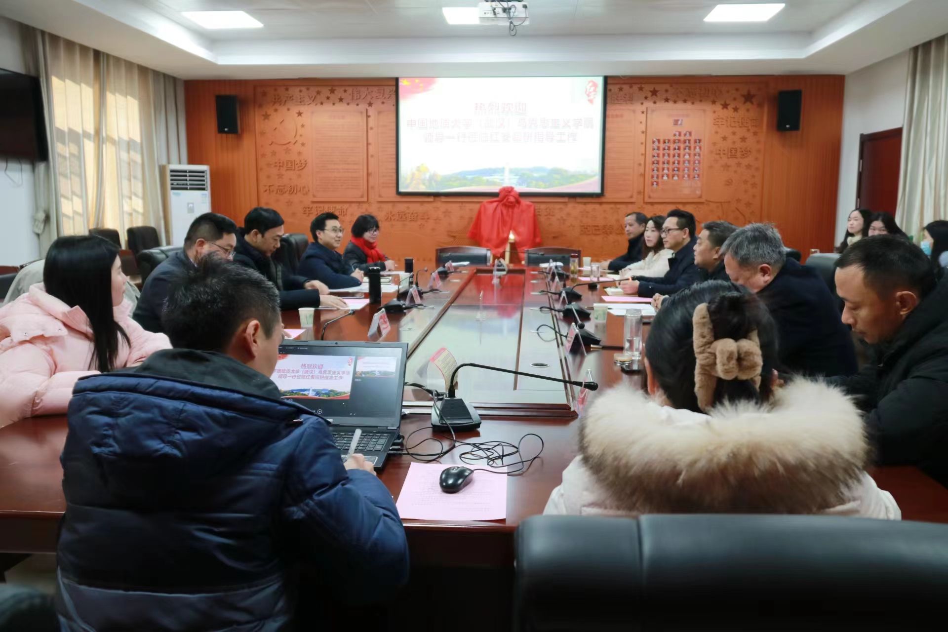 李银飞就基地的建设现状和未来规划做了相关介绍。他表示,期待有更多地大教授来教育基地传道授业解惑、有更多地大学子来红安学习实践成长、有更多富有红安元素的课程和课题在地大的智力支持下得到深入研究和挖掘。