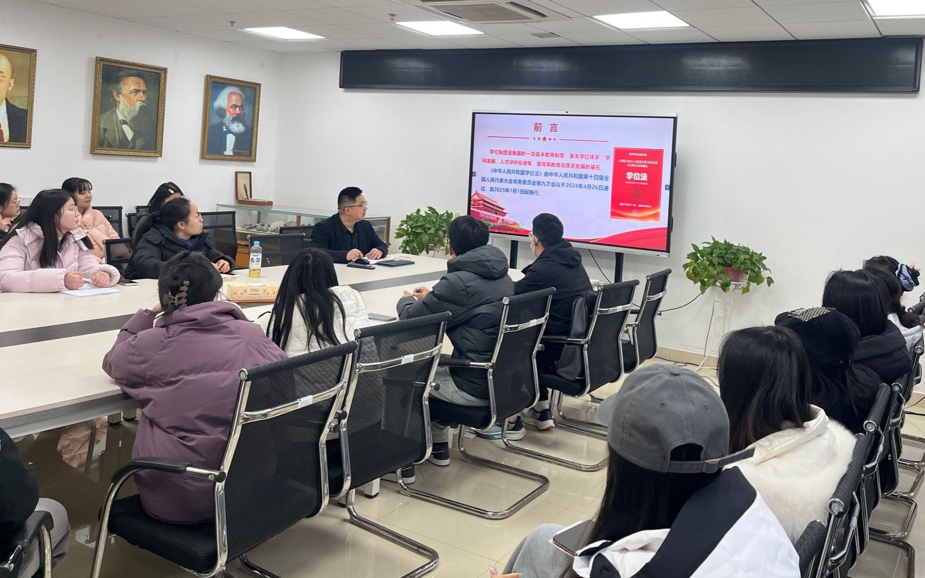 为深入贯彻落实《中华人民共和国学位法》(以下简称《学位法》)暨导师专题培训的工作要求,切实提升学生培养质量,规范学位授予工作,beat365官网于2025年1月6日-15日分组开展了《学位法》专题学习活动。本次学习活动采用线上线下结合的形式进行。学院领导班子成员、30余名研究生导师和全体研究生参加了专题学习,副院长陈军主持和领学。