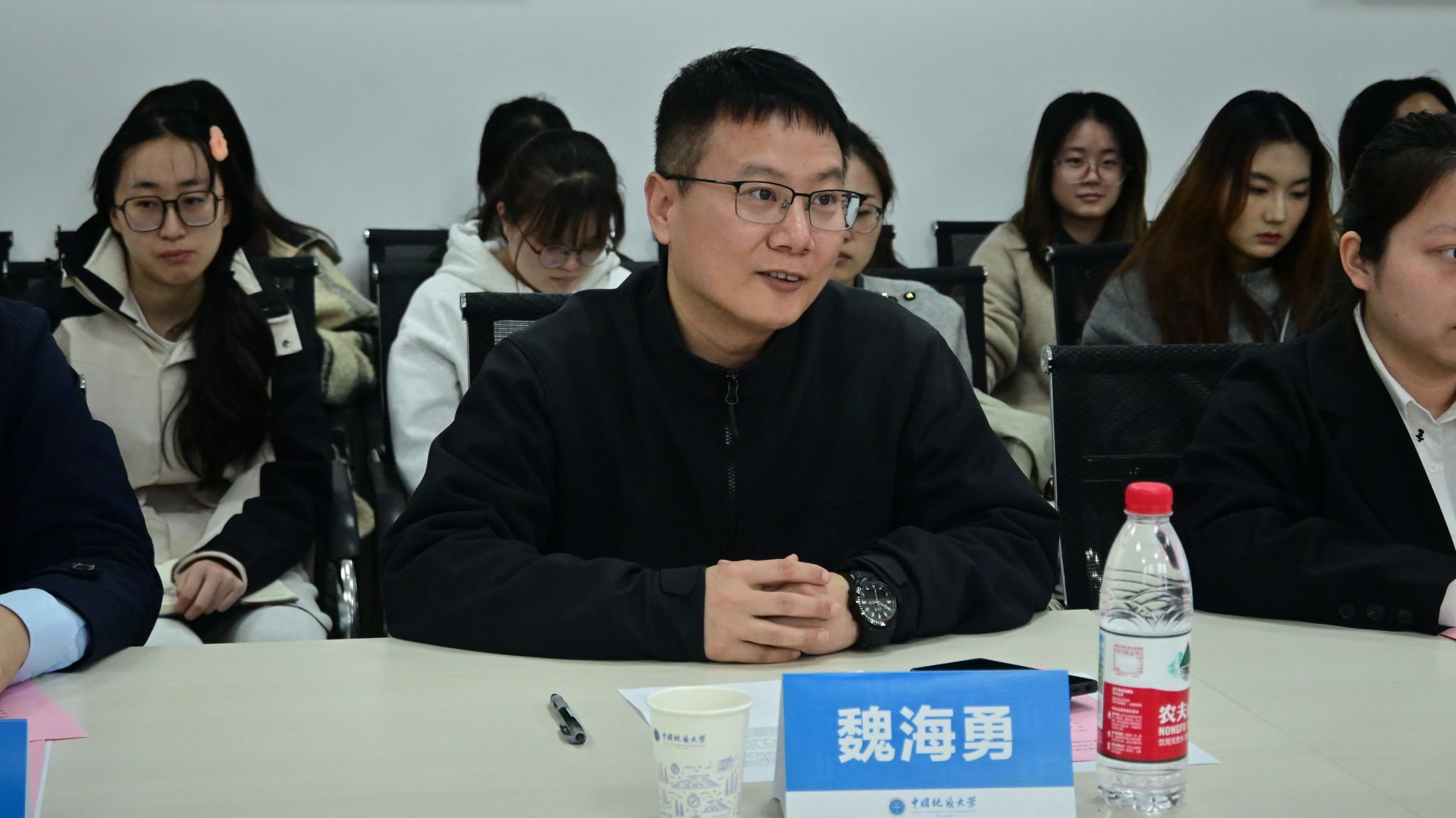 魏海勇致开幕辞。他强调,太行精神是中国共产党人的精神谱系的重要组成部分,承载着中华民族优秀的传统文化基因,体现了中华民族的精神特质和价值追求,学院要把党史学习作为深入贯彻中央八项规定精神学习教育的重要内容。安丽琴介绍了此次活动的目的与意义,诚邀地大学子赴武乡实地感悟红色文化,汲取奋进力量。