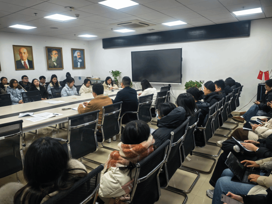 李胜蓝详细解读了2026届本科生毕业论文工作计划,从选题申报、开题报告、中期检查到论文撰写及答辩等环节的时间节点进行梳理,并强调各阶段需注意的关键事项。陈军从提高人才培养质量、强化本科毕业论文过程管理的重要意义出发,系统讲解了论文撰写的总体要求和技术规范,提醒全体学生高度重视毕业论文写作的育人功能,并从提升毕业论文规范性、严谨性、创新性等方面提出了建议。曹阳针对论文选题方向与思政学科特色结合分享了论文写作经验,引导学生关注社会热点问题,实现理论与实践的深度融合。武彦斌强调了毕业论文过程中的纪律,要求学生严格遵守各项时间安排,按时完成开题报告、答辩等各阶段任务,保持与指导教师的积极沟通,以严谨态度和扎实学风高质量完成毕业论文。何晓龙强调了毕业论文的各项时间安排,并为学生们介绍了论文管理系统运用情况。