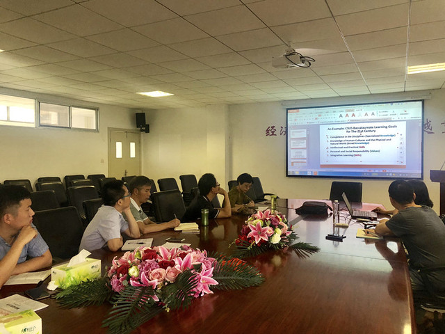 刘教授首先介绍了加州州立大学萨克拉门托分校的教学评估情况、学生课程的学分构成等;讲述了加州州立大学萨克拉门托分校在人才培养上的特色(即为当地培养有领导力的人才),以及中美两国在人才培养上的差别。随后,刘教授以如何对培养目标中的“Critical Thinking”进行评估为例,解释了加州州立大学萨克拉门托分校的教学评估是如何开展的,其中运用了哪些社会学的统计方法,是如何一步步进行的,其结果是如何反馈的等等。最后,刘教授还耐心地回答了在场老师提出的问题。